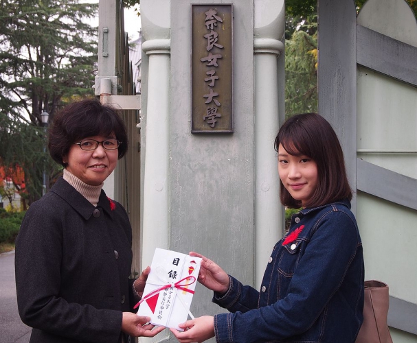 平成30年11月26日(月)、奈良女子大にて、奈良女子大学恋都祭実行委員の神谷美里さんが、11月3日から5日まで開催された学園祭「第67回恋都祭」において実施したチャリティーくじやチャリティーヘアカットの収益金及び、会場に設置した募金箱による募金の総額130,184円を、昨年に引き続き赤い羽根共同募金として、奈良県共同募金会に寄託されました。